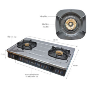 – Hệ thống đánh lửa Magneto – Có đầu hâm – Đầu đốt bằng đồng thau chống biến dạng – Mặt bếp bằng Inox sáng bóng chống bám bẩn – Kiềng kim loại phủ men 6 chân chắc chắn  |