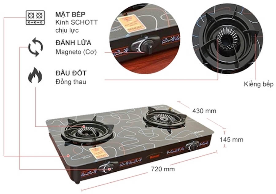 – Bếp gas Rinnai RV-715SLIM-SCH(ZI) hứa hẹn sẽ là người bạn đồng hành lý tưởng của bạn trong tất cả các bữa ăn với thiết kế 2 lò tiện lợi cùng đầu đốt bằng đồng chất lượng sẽ cho ra những món ăn thơm ngon, hấp dẫn và đảm bảo an toàn tối đa cho người dùng.
