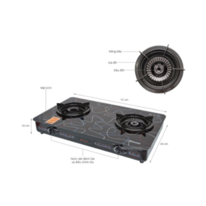 – Mặt bếp bằng kính Schott. – Khung sườn thép phủ sơn. – Kiềng thép phủ men. – Đầu đốt bằng đồng thau. – Trọng lượng 9,5Kg  |