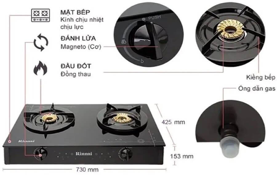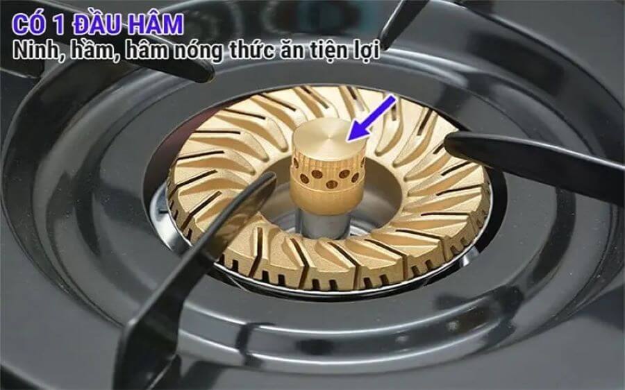 – Sản phẩm sử dụng đầu đốt bằng đồng thau cho ngọn lửa xanh, tiết kiệm gas hơn các bếp gas thông thường.