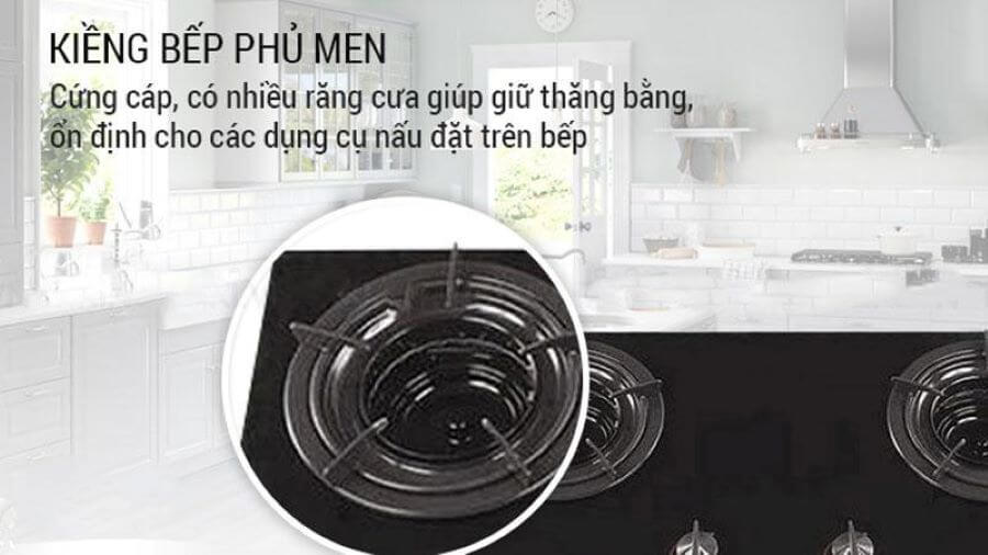 – Bếp gas Rinnai RVB-2I(AB) có kiềng bếp thiết kế 5 chân chắc chắn, có độ bền cao, không bị méo mó hay bị bào mòn dưới áp lực của xoong nồi lớn và nhiệt độ cao. Bao phủ bên ngoài kiềng là lớp men tráng màu đen đơn giản, tinh tế, chống ăn mòn và vệ sinh dễ dàng.