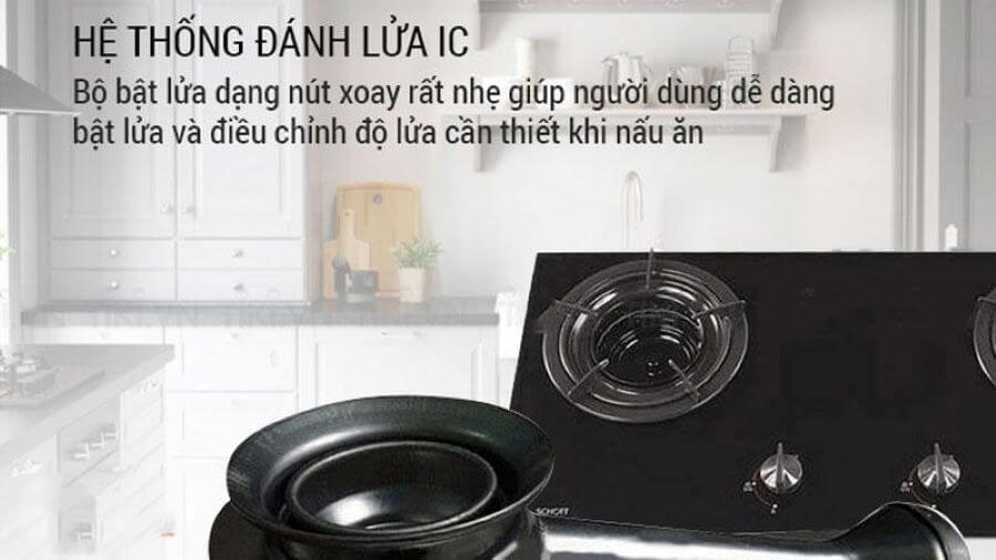 – Bếp gas có hệ thống đánh lửa IC siêu nhạy
