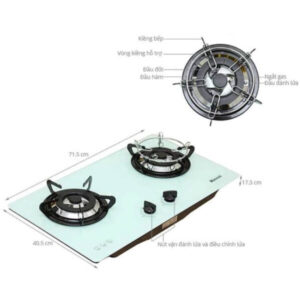 – Mặt kính cường lực, chịu nhiệt, chịu lực – Cảm ứng ngắt gas tự động – Đánh lửa IC, sử dụng Pin. – Đầu đốt bằng hợp kim đồng thau. – Có pép hâm ( chức năng hâm ) – Kiềng thép tráng men – Lượng gas tiêu thụ: 0,492kg/h. |